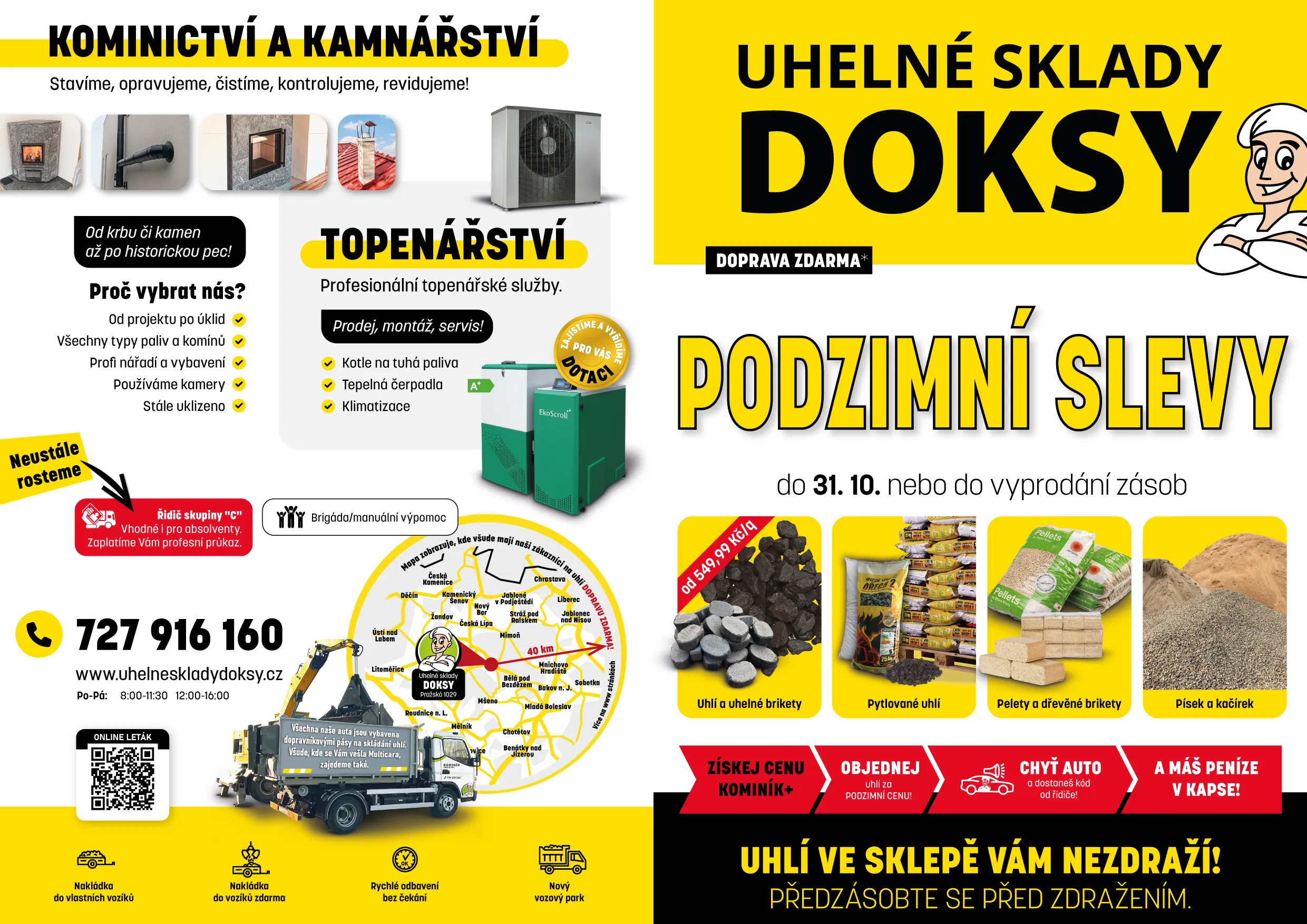 Podzimní slevy jsou zde! Pozor! Speciální akce na Bílinský ořech 2 (Ledvice) trvá pouze do 26. 10. 2025 Nezmeškejte jedinečnou možnost nakoupit extra levné uhlí! Vyjednali jsme pro Vás speciální cenu, ale pouze po velmi krátkou dobu. Proto s nákupem neváhejte! Že se Vám to zrovna teď nehodí? Nevadí! Objednejte si u nás uhlí a my Vám ho přivezeme klidně až za měsíc. Protože tohle se opravdu vyplatí!